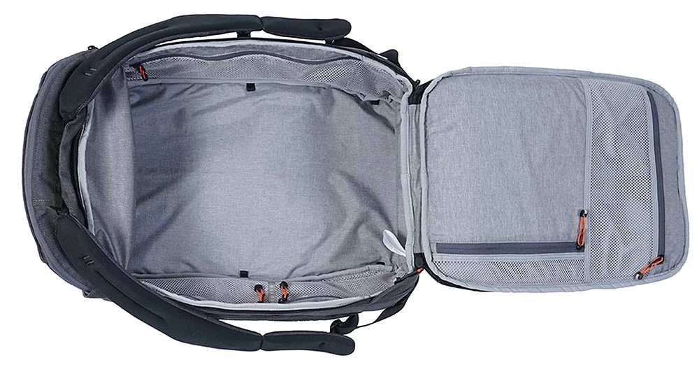 - Schultergurte wie Hüftgurt verstaubar für Gepäckaufgabe oder für das noch cleanere Aussehen verstaubar und abnehmbar
