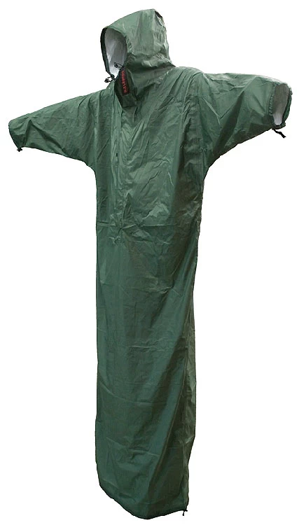 Darüber hinaus stellt der Bivanorak eine vollwertige Alternative zum Biwaksack dar. Vorteil des Bivanoraks: Er verfügt über Ärmel, so dass man wesentlich beweglicher ist. Ein weiterer Vorteil gegenüber einfachen Biwaksäcken: das Material ist durch eine speziell PU-Beschichtung wasserdicht, aber wasserdampfdurchlässig.