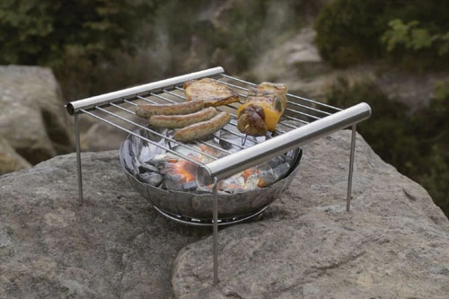 Die Schale ist aus verzinktem Stahl und optimal für die Nutzung mit unseren Klappgrills wie z.B. dem ‚Grilliput‘ (siehe drittes Bild) oder dem ‚Basic‘ geeignet, sowie auch für kleinere Lagerfeuer.